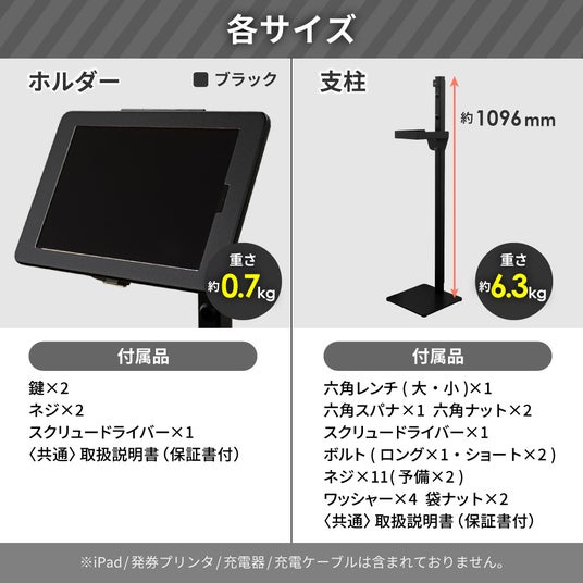 各サイズiPad対応ホルダー 発券プリンター用トレイ付き フロアスタンド セット版 OWL-AWST01L-SETシリーズ