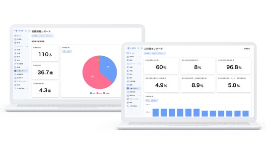 組織情報レポートと人的資本レポートを表示でき、月単位で自由に分析期間を選択することや、性別・部門・役職・雇用形態などで詳細分析もできるため分析業務を効率化します。