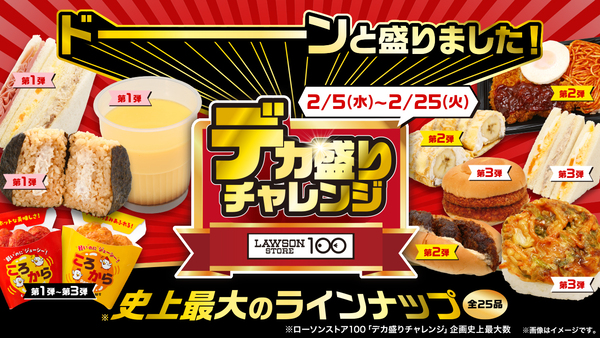 ローソンストア100は「デカ盛りチャレンジ」を、2月25日まで開催しています。