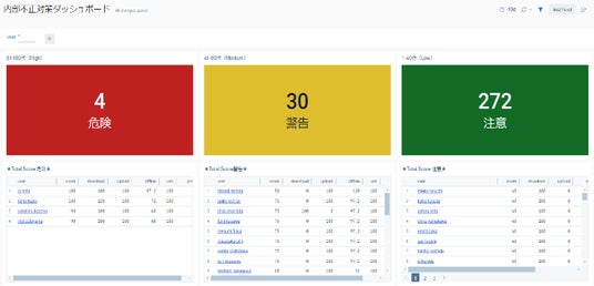 - 内部不正対策ダッシュボードを用いて可視化と調査を行うことが可能