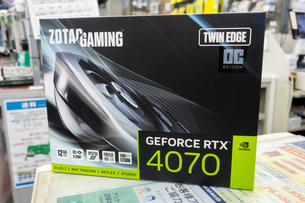 ビデオカードは、店頭在庫が残りわずか(2月10日時点)となっているZOTACのGeForce RTX 4070搭載モデルだ。デュアルファンクーラー搭載で、コンパクトPCケースに最適な全長が短い仕様になる。後継モデル登場による販売終了のため、在庫限りなので早いもの勝ちだ。