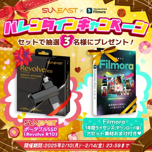 【 Filmora × SUNEAST 】動画編集ソフトとポータブルSSDのセットが当たる!バレンタインキャンペーン実施中 |Wondershare Filmora