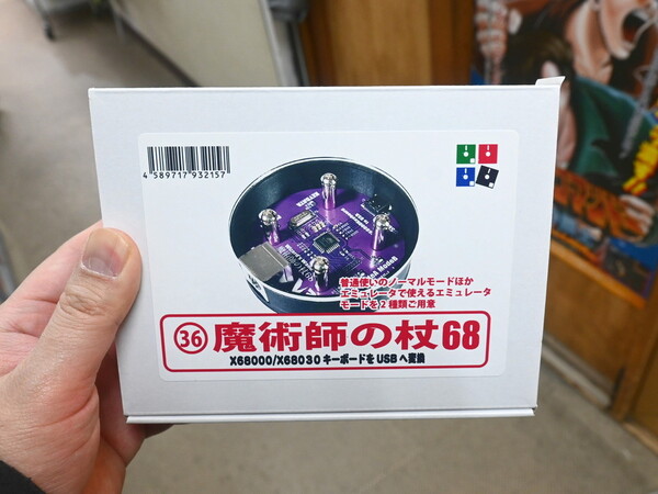 もう一つの魔術師の杖68は、X68000用キーボードをWindows PCに接続するための変換ユニット。Windowsで使用するためのノーマルモードのほか、xm6/WinX68/ex68などの各種エミュレーターへキーを割り当てて使用するための2つのエミュレータモードを備えている。