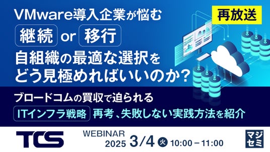 マジセミ株式会社は、大変好評をいただいた「【再放送】VMware導入企業が悩む「継続or移行」、自組織の最適な選択をどう見極めればいいのか?」というテーマのウェビナーを再放送します。