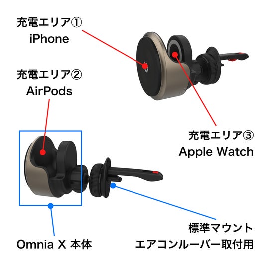 【Omnia X MagSafe 3in1 マルチワイヤレスパワーアダプター + オプションマウント1種】
