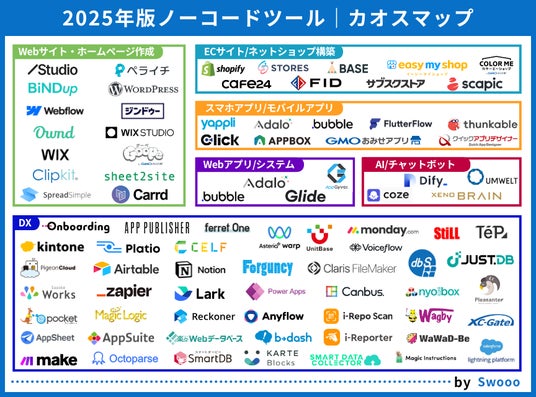 ノーコード受託開発事業を展開する合同会社ゼロイチスタート(本社:東京都中央区)は、2025年版「ノーコード開発ツール」のカオスマップを公開しました。