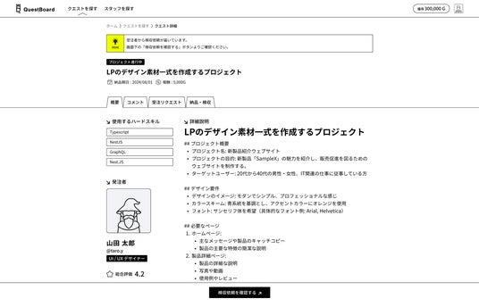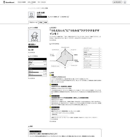 また発注者と受注者による評価などが実績として残るため、データが蓄積されるほど、案件(クエスト)と受注者の適切なマッチングが実現します。