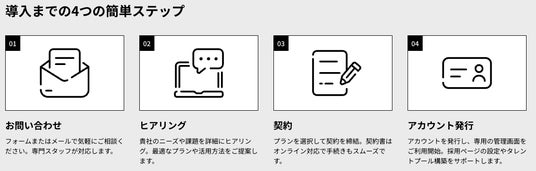 お問い合わせ企業様ごとにヒアリングし、最適な活用法をご案内します。 契約完了後、管理者用のアカウントを発行いたします。