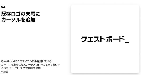 【変更後】 クエストボード_QuestBoardのロゴアイコンにも採用しているカーソルを末尾に加え、テクノロジーによって裏付けされたサービスとしての印象を追加