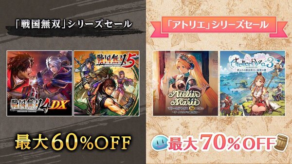 「アトリエ」シリーズは最大70%オフ! 「戦国無双」シリーズは最大60%オフ!!