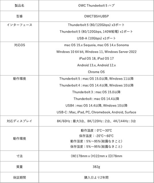 日本語サイト https://www.owcasia.jp/docks/owc-thunderbolt-5-hub