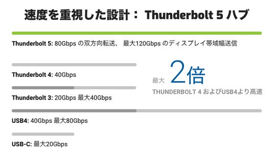 最大80Gbpsの双方向データ転送速度、最大120Gbpsの高ディスプレイ帯域幅をサポート