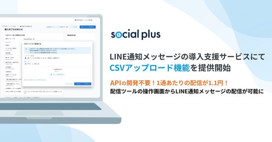 LINEのCRM活用・ソーシャルログインサービス「ソーシャルPLUS」(株式会社ソーシャルPLUS、所在地:東京都港区、代表取締役:佐藤 亮介)は、「LINE通知メッセージの導入支援サービス」において、「CSVアップロード機能」の提供を開始いたしました。