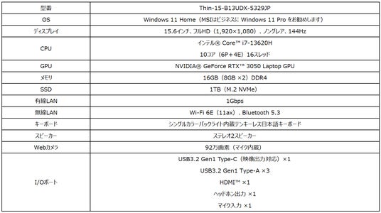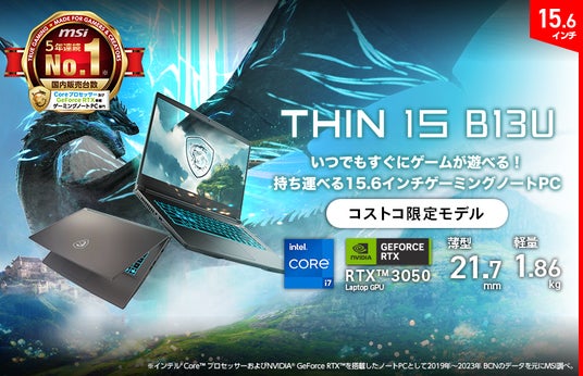 i7、RTX 3050、メモリ 16GB、SSD 1TBで基本性能バッチリ! 薄型・軽量ゲーミングノートPC コストコ限定モデル「Thin-15-B13UDX-5329JP」発売