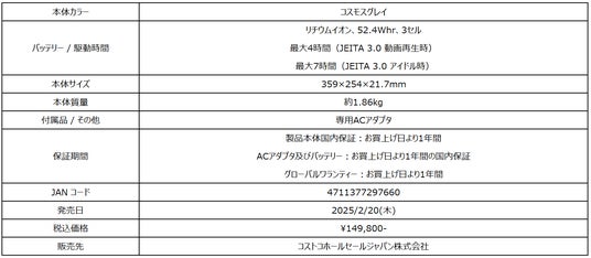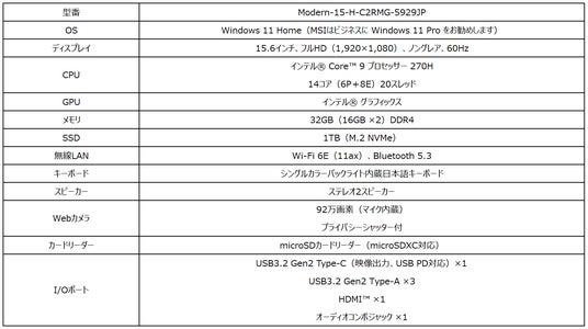 また、「“軽さ”ではなく“速さ”」を重視したハイスペックビジネスノートPCのコストコ限定モデル「Modern-15-H-C2RMG-5929JP」も同時発売いたします。