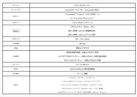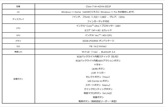 ・Claw 7 AI+ A2VM シリーズ製品ページ:https://jp.msi.com/Handheld/Claw-7-AI-Plus-A2VMX