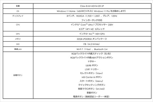 ・Claw 8 AI+ A2VM シリーズ製品ページ:https://jp.msi.com/Handheld/Claw-8-AI-Plus-A2VMX