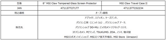 ●Claw 8 AI+ A2VM専用液晶保護ガラスフィルムと専用ポーチを3月中旬頃発売