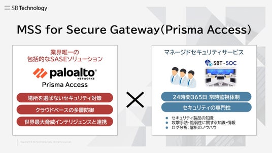 SBテクノロジー株式会社(本社:東京都新宿区、代表取締役社長 CEO:阿多 親市、以下 SBT)は、パロアルトネットワークス社のクラウド型セキュリティプラットフォーム「Prisma(R) Access(プリズマ アクセス)」※1を活用した監視サービス「MSS for Secure Gateway(Prisma Access)」を、2025年2月13日から提供します。