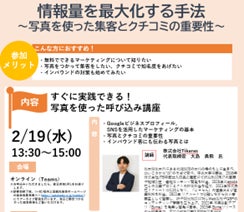 今後はインバウンド需要を増大していくにあたり、都会と地方の集客の差をどう埋めていけるかかが大きな鍵となっています。この課題を解決するのが今回のウェビナーです。今回のウェビナーのテーマは「情報量を最大化する手法~写真を使った集客とクチコミの重要性~」です。業界の先頭に立つフロントランナーや、当社のようなWEB集客の専門家からのボトムアップやスキルアップを意図的に行っていく必要があると考え、今回のウェビナーが実現しました。当日は、会員様限定にはなりますが、より本来あるべき日本のおもてなしに専念できる仕組み作り、そのために活用すべきウェブ知識などもお伝えします。