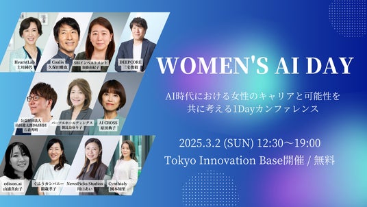 Cynthialy株式会社(所在地:東京都渋谷区、代表取締役:國本知里、以下Cynthialy)が運営する女性AIリーダー人材の育成・推進コミュニティ「Women AI Initiative(以下WAI)」は、2025年3月2日(日)に、初の大型イベント「Women's AI Day」を開催することをお知らせいたします。また、イベント内で開催する女性AI起業家ピッチコンテストの登壇者も同時に募集開始いたしました。