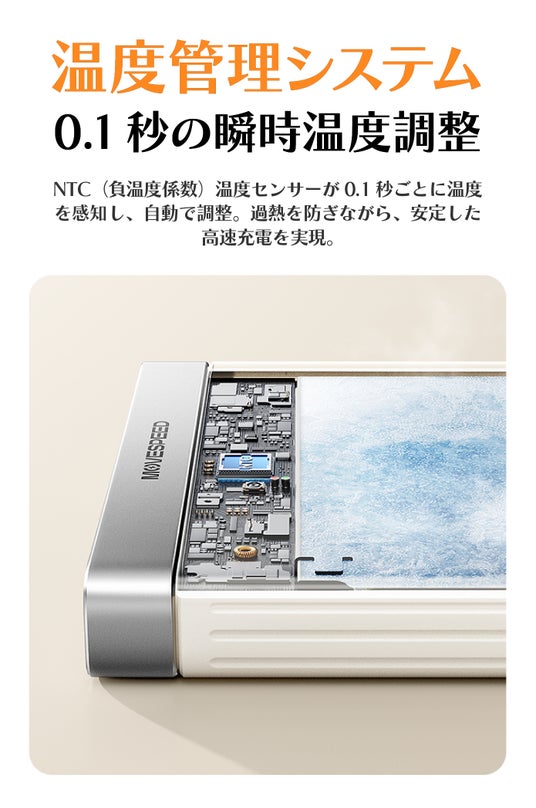 ・内蔵のNTC温度センサーでMoveBoostの放熱を制御し、急速充電を実現。