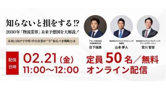 名 称 :知らないと損をする!?2030年「物流業界」未来予想図を大解説! ~未来に向けて中堅・中小企業が“今”取るべき戦略とは~