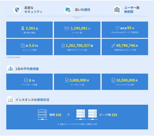 株式会社ダイレクトクラウド(本社:東京都港区、代表取締役:安 貞善、以下ダイレクトクラウド)は、2024年度の利用実績を発表しました。昨今、リモートワークやDX推進に伴い、一時的なファイル共有からファイルサーバーをクラウドへ移行することでデータ管理の負荷を削減しつつ、さらなるデータ活用を推進する企業が増えています。