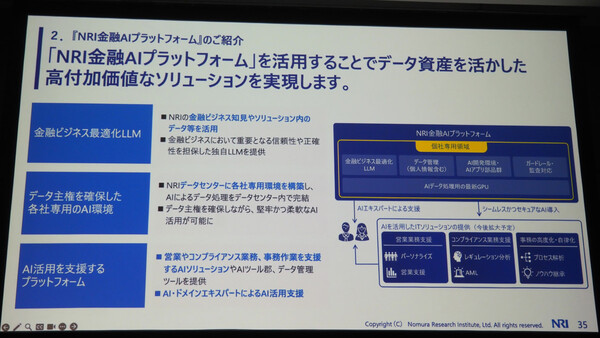 NRIのソブリンクラウド、新たに金融業向けAIプラットフォームも発表