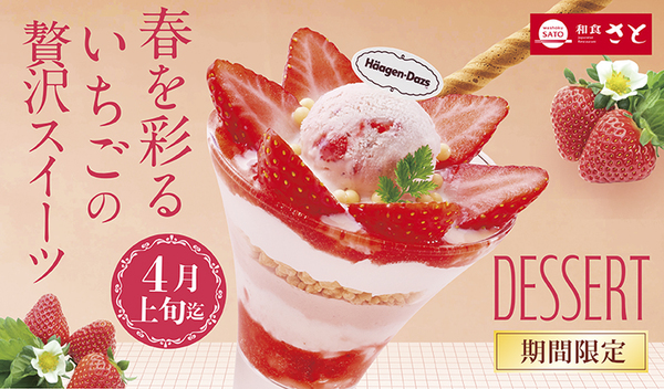 和食さとでは、フレッシュいちごに濃厚な甘みの練乳、そして厳選されたいちごと華やかな香りが魅力的な「ハーゲンダッツ ストロベリー」を使用した「いちご×みるく」の甘ずっぱく、春にぴったりなスイーツメニューを販売開始。