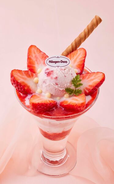 季節限定のパフェは、いちごクリーム、ぷるぷるとした食感のミルクプリン、ストロベリーダイスの上に、いちごの濃厚な味と華やかな香りが特徴のアイスクリーム「ハーゲンダッツ ストロベリー」をのせて、さらにフレッシュいちごを添えた「いちごとみるくの贅沢パフェ」(1098円)がおすすめだという。