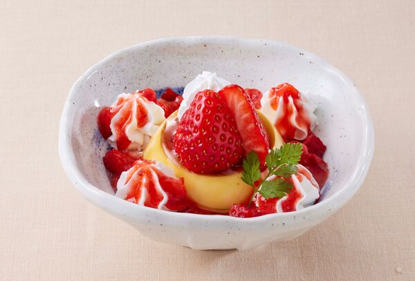 ▲ストロベリープリン(658円)いちごをたっぷり使用した、春めく和食さとの「店仕込みプリン」。