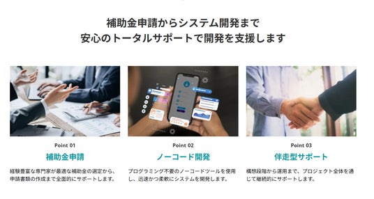 合同会社NoCodeCamp(以下、NoCodeCamp)は、補助金の活用とノーコードツールを組み合わせることで、企業や事業者が低コストかつ短期間でシステム開発を実現する支援を行っています。