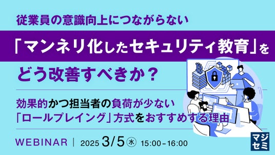 マジセミ株式会社は「従業員の意識向上につながらない「マンネリ化したセキュリティ教育」をどう改善すべきか?」というテーマのウェビナーを開催します。