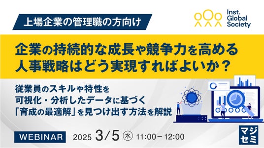 マジセミ株式会社は「【上場企業の管理職の方向け】企業の持続的な成長や競争力を高める人事戦略はどう実現すればよいか?」というテーマのウェビナーを開催します。