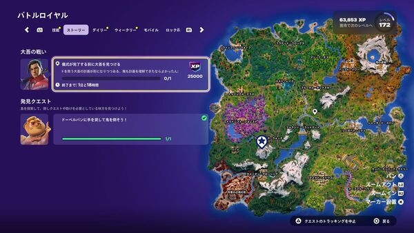 場所はバトルロイヤルマップの中央やや左下にある雪山。大きなゲートを前に儀式を行う「大吾」というキャラクターのところへ行くだけで、経験値がもらえるクエストも発生しているのでお見逃しなく。