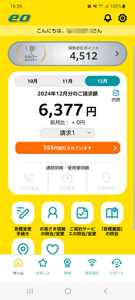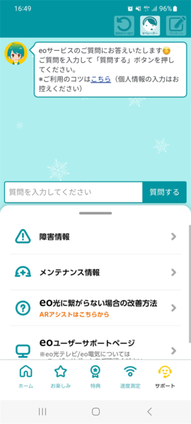 特に、気になるサポートには「eoアプリ」という切り札がある。リリースされてまだ1年ほどの公式スマホアプリだが、ユーザーはアプリ上で利用料金や契約内容の確認・変更のほか、各種サポートを受けたり、AIチャットによる相談、通信速度チェックといったことも可能。各オプションサービスもアプリから申請できる徹底ぶりだ。