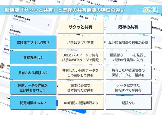 保険管理アプリ『保険簿』、アプリ不要で”安心”&”手軽に”保険を共有できるサクッと共有機能追加!