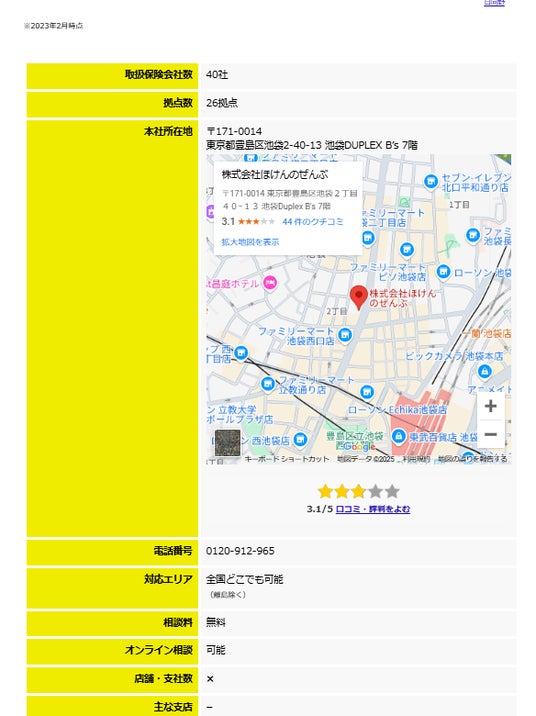 【ゼロメディア】保険相談カテゴリ 店舗所在地の地図を設置
