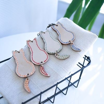 キャットレザーチャーム(白ねこラメ/カラーステッチ)¥935