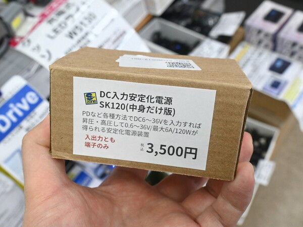 ショップいわく「テキトーなDCを放り込めば昇圧降圧してくれる」、コンパクトな直流安定化電源の新モデルが販売中。従来は80Wまでのモデルが販売されていたところ、新たに最大120W出力に対応した新モデルが入荷した。