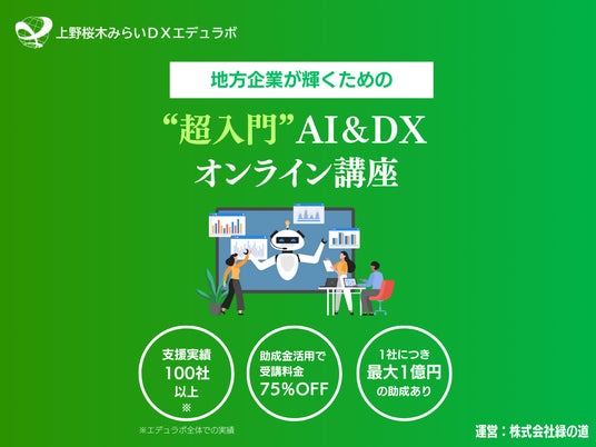 株式会社緑の道(東京都台東区)は、地域みらい総研株式会社(東京都港区)と連携し、DX(デジタルトランスフォーメーション)およびAI研修サービス「上野桜木みらいDXエデュラボ」を開始いたします。まずは自社グループ企業向けに研修を提供し、その成果を基に、より広く地域企業や全国企業に向けてサービスを拡大していく予定です。