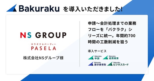 この度、「カラオケパセラ」や、バリ風都市型ホテル「バリアンリゾート」などを運営するNSグループに「バクラク経費精算」「バクラク請求書受取」「バクラクビジネスカード」が導入されました。