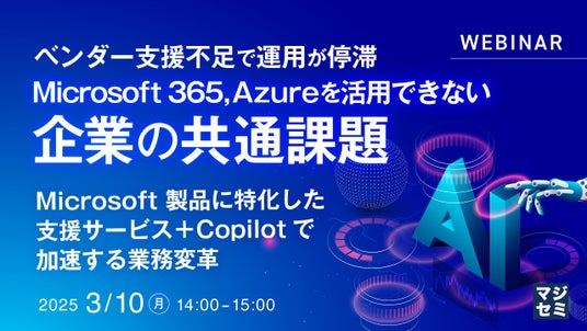 マジセミ株式会社は「ベンダー支援不足で運用が停滞 Microsoft 365, Azureを活用できない企業の共通課題」というテーマのウェビナーを開催します。