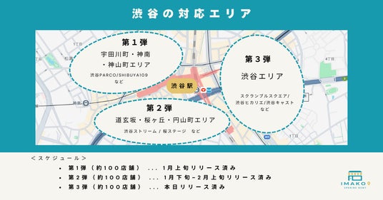 株式会社imako(本社:東京都渋谷区、代表取締役: 浜田真衣 以下、imako)は、「今ここ空いてる?がわかる」カフェ混雑情報マップimako(いまこ)に、新たに「渋谷エリア(渋谷区渋谷」エリア、約100店舗が追加され、全ての渋谷エリアの追加が完了したことをお知らせします。
