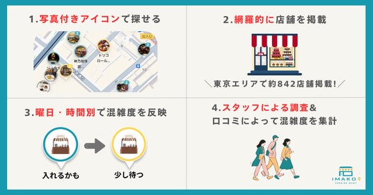imakoは、引き続き混雑調査や口コミなどの情報を通して、要望の多いエリアから順に隔週で100件ずつのペースでカフェ混雑情報を追加していく予定です。