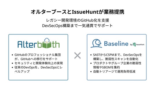 オルターブースは、日本発のアプリケーションセキュリティポスチャー管理(ASPM)ツール「Baseline」を提供するIssueHunt株式会社と連携しGitHub移行とDevSecOpsを支援。