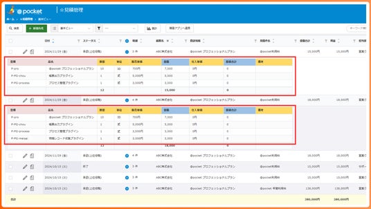機能追加:一覧表示アプリの詳細を開かなくても、一覧画面からプラスボタンを押すだけでレコード内の明細を確認できる機能です。
