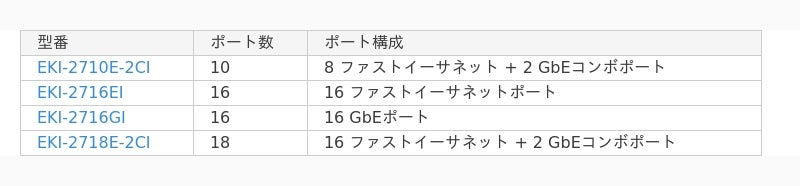 日本市場への投入は、「EKI-2718E-2CI」および同シリーズの「EKI-2710E-2CI」「EKI-2716EI」は販売中、「EKI-2716GI」は2025年3月を予定しております。