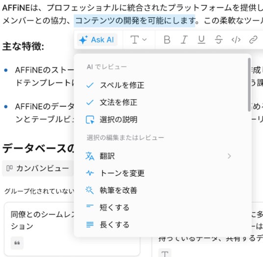 【 上位版「AFFiNE AI」だけの、AI機能 】